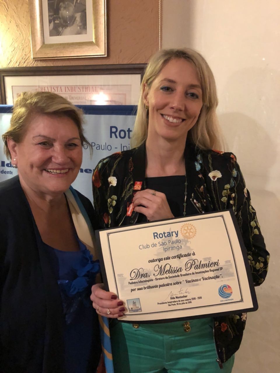 No dia 30 de julho recebemos em nossa reunião a Dra. Melissa Palmieri, Coordenadora Médica Vacinas, da Hermes Pardini - Medicina, Saúde e Bem-estar, que proferiu uma excelente e muito esclarecedora palestra sobre o tema vacinas.